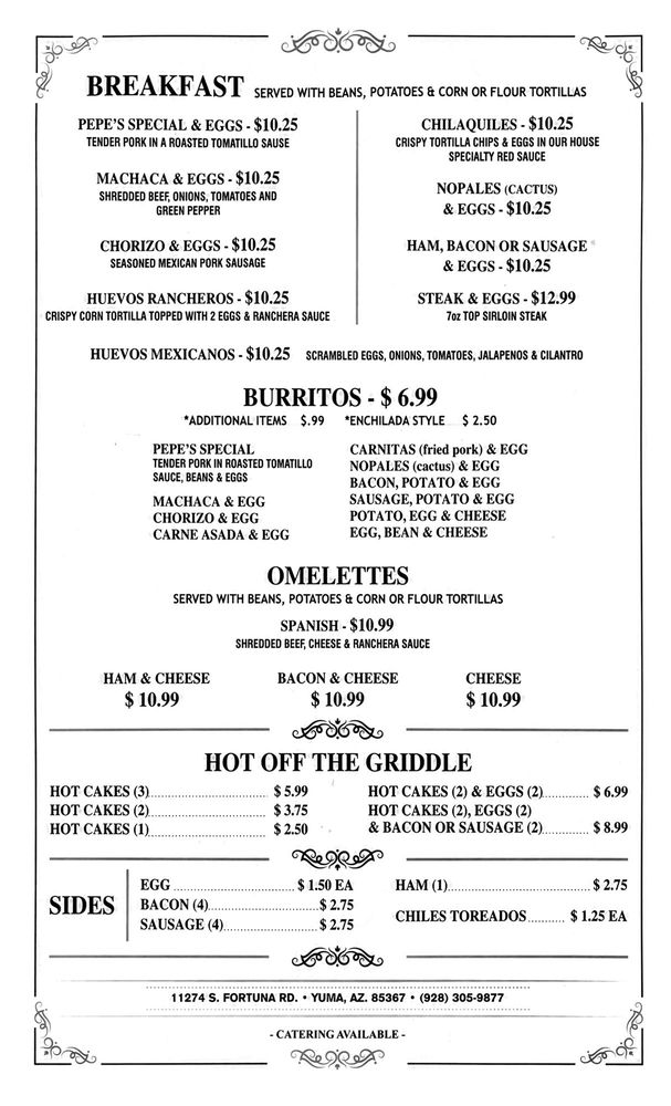 Welcome to Los Manjares Restaurant, a delightful hidden gem located at 11274 S Fortuna Rd, Yuma, AZ. Specializing in authentic Mexican breakfast and brunch dishes, this eatery is quickly becoming a local favorite. The menu tantalizes your taste buds with offerings like their number 4 special: the chili Relleno paired perfectly with a hard shell taco, rice, and beans. Customers rave about the tender chicken enchiladas, rich enchilada sauce, and the generously portioned folded tacos.